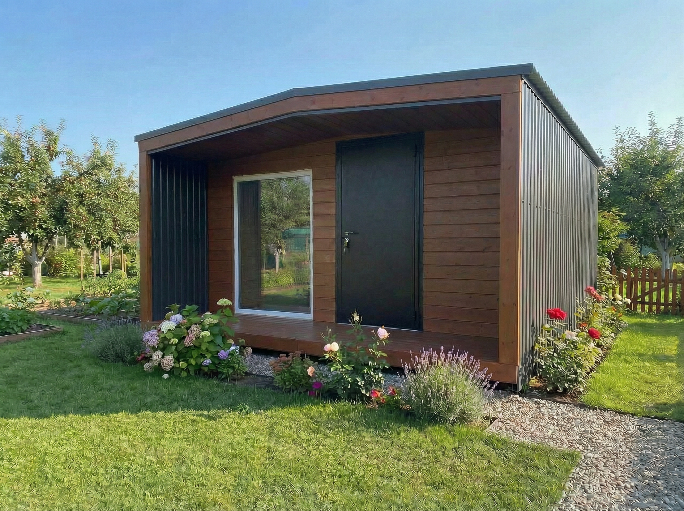 В базовой комплектации профлист цветной на выбор. Мы предлагаем профлист любой толщины и цвета. В качестве альтернативы можно установить виниловый или металлический сайдинг, блокхаус или планкен, что позволяет адаптировать внешний вид под Ваши предпочтения.